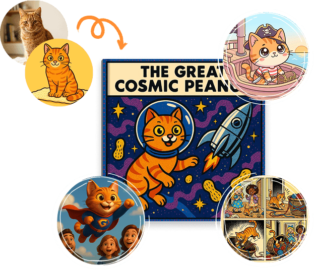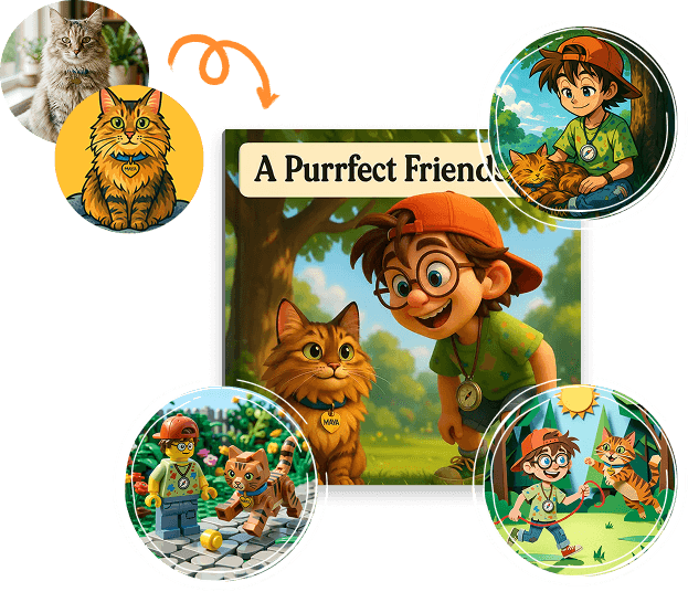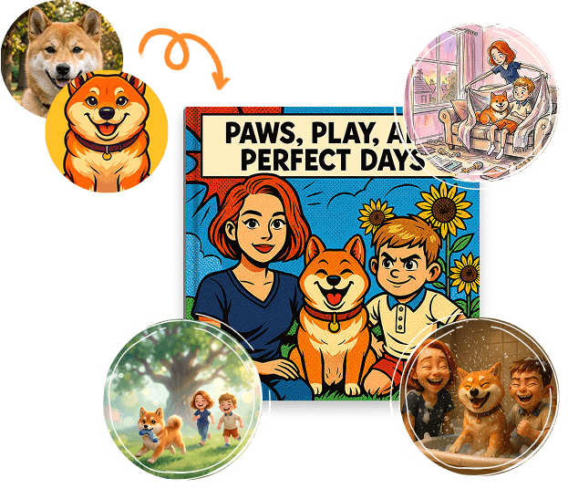 Playful or sentimental, silly or heartfelt - every pet moment deserves more than a photo buried in your camera roll. Create your pet as a character, tell us the story, and we'll turn it into a beautiful hardcover book you'll treasure forever.